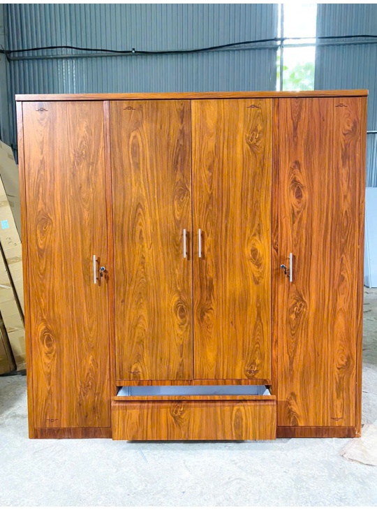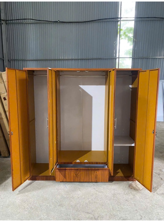 Tủ thép vân gỗ 4 cánh với chất liệu cứng cáp có độ bền sử dụng lên đến hàng trăm năm.