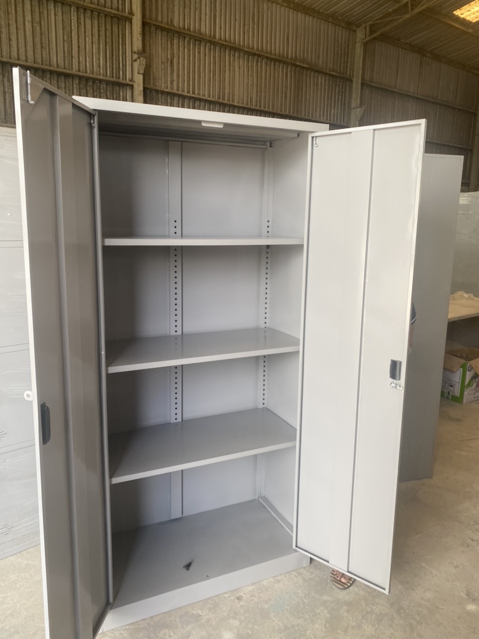 Tủ hồ sơ 2 buồng 2 cánh sắt với kết cấu nguyên khối gồm 2 khoang sắt, 2 cánh sắt mở có 2 đợt di động chia làm 4 ngăn để tài liệu, trên mỗi cánh có tay nắm âm và khóa locker.