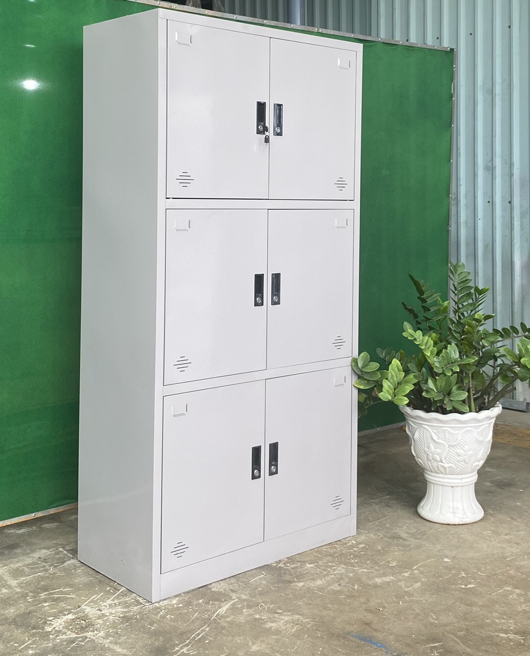 Tủ sắt đựng tài liệu 6 ngăn được làm bằng sắt nhập khẩu, sơn tĩnh điện có màu ghi sáng hoặc trắng tùy theo yêu cầu của khách hàng.